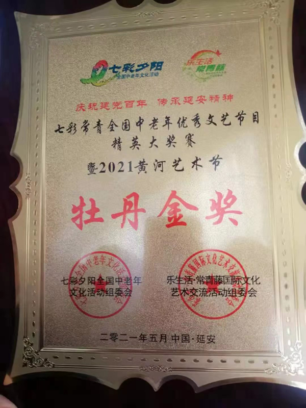 5月15日,塔河森林之聲合唱團應(yīng)邀參加了全國老齡委在陜西延安舉辦的“慶祝建黨百年·傳承延安精神”全國中老年優(yōu)秀文藝節(jié)目精英大獎賽暨2021年黃河藝術(shù)節(jié),并榮獲牡丹金獎(最高獎項)和優(yōu)秀組織獎。