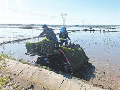 坤站村稻豐糧食種植農(nóng)民專業(yè)合作社理事長(zhǎng)楊軍介紹,受氣溫影響,今年插秧比往年延遲一周左右,為了把時(shí)間搶回來(lái),合作社社員起早貪黑,從早晨四點(diǎn)多就開始插秧。合作社今年種植水稻面積3000多畝,為抗低溫、保全苗、奪高產(chǎn),全部采用機(jī)械化插秧,一臺(tái)插秧機(jī)每天可插秧50畝。楊軍說(shuō),去年建設(shè)的水稻公園成為游客網(wǎng)紅打卡地,今年在稻田公園新設(shè)計(jì)一個(gè)慶祝建黨100周年和鄉(xiāng)村振興的彩繪圖案,助力鄉(xiāng)村旅游業(yè)發(fā)展。