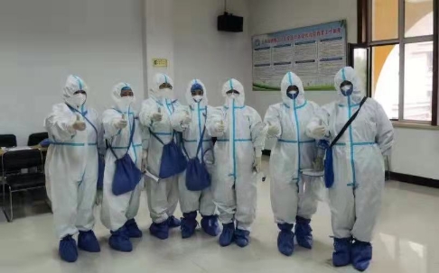 自2020年1月感染內科全體醫(yī)護承擔起發(fā)熱門診此項艱巨任務,一樓設立為發(fā)熱門診留觀室,二樓為核酸未出結果者緩沖病房,三樓、四樓為核酸陰性但尚未解除隔離的留觀病房。此次根據(jù)疫情防控要求,在原本樓層多,醫(yī)護工作“戰(zhàn)線”長的情況下,還特別設立了“巴彥”疫區(qū)專屬樓層。來自風險區(qū)患者就診時,在隔離區(qū)的一名醫(yī)生和一名護士每個班次經(jīng)常工作6-8小時,樓上樓下的反復奔走,裹著密不透氣的防護服,汗水濕透衣背。長時間的不能喝水吃飯如廁,挑戰(zhàn)人體生理忍耐極限,但從未有人叫苦委屈。白班的同志在結束日間工作后,為了解決科室人員少,且工作量大的情況,主動留下加班到很晚,而第二天還要支援社區(qū)全員核酸采集任務。