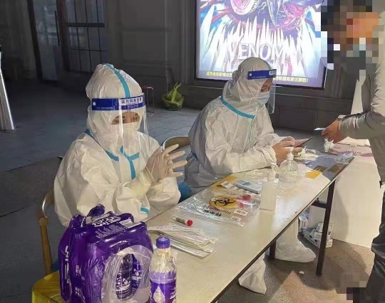 在做好發(fā)熱門診本職工作的同時,護理團隊還全力支援社區(qū)全員采集核酸任務。有的同志在忙碌了一夜夜班后,連家都沒回,又立刻投身到核酸采樣任務中。時間緊任務重,經(jīng)常早上4、5點鐘就要出發(fā)集合去采樣地點,直到晚10點左右才結束工作。采樣地點多在室外,氣溫低,更是放棄了吃飯休息的時間,爭分奪秒地為一個又一個居民采樣。長達十幾個小時的高壓工作,導致肩頸、手腕損傷,但就算這樣,也從未有人下“戰(zhàn)場”。