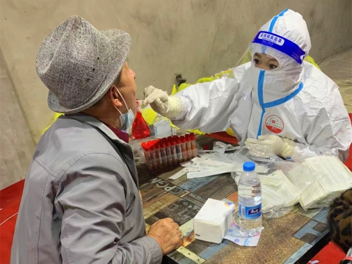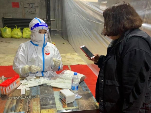 10月31日11時,在哈爾濱市新香坊鎮(zhèn)社區(qū)核酸采集現(xiàn)場,黑龍江省醫(yī)院CCU護士畢贏穿著一身白色的防護服正在和同事們熱火朝天地并肩戰(zhàn)斗著,認真地為每一名市民進行著核酸采集工作。原本,此時此刻應是畢贏最幸福的時刻:她的婚禮典禮開始時刻定在了2021年10月31日11時18分。一場突如其來的疫情打亂了所有的事先安排,前一天還在布置婚房,準備婚禮酒店需用物品的畢贏,接到了需要馬上奔赴抗疫戰(zhàn)場的通知,婚紗面前,她毅然決然地選擇了防護服,從潔白的婚紗換成了最美的“大白”。但畢贏知道,在人民健康面前,這是她人生中做出的最正確的選擇。
