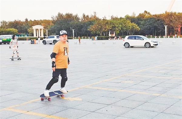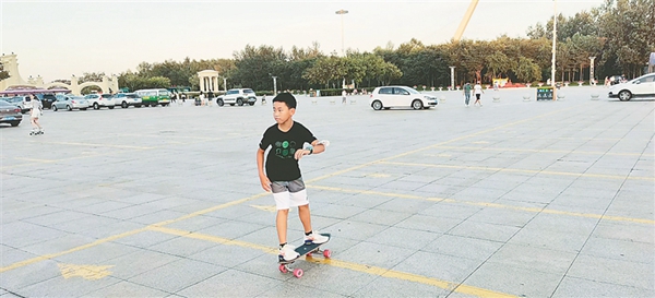 7月21日18時許,太陽島地鐵站出口附近的小廣場,一群人抱著陸沖板陸續(xù)趕到,其中“80后”“90后”居多,還有帶孩子來的“寶媽”。不少人來的時候穿著上班的職業(yè)裝,換上圓領(lǐng)T恤,戴上鴨舌帽,配齊護(hù)具,簡單熱身后,迫不及待地開滑。