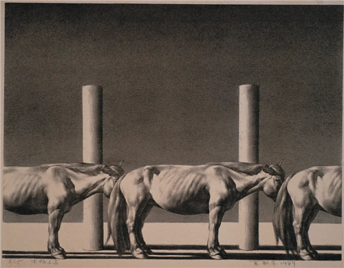 木樁與馬 47×62cm 石版畫 1989年