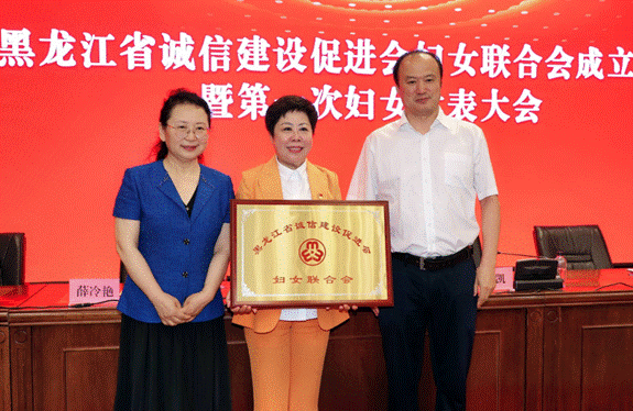 省直機(jī)關(guān)工委副書(shū)記、全省性社會(huì)組織黨委書(shū)記徐凱,省婦女聯(lián)合會(huì)黨組成員、省政府?huà)D兒工委辦主任姜秀麗為黑龍江省誠(chéng)信建設(shè)促進(jìn)會(huì)婦女聯(lián)合會(huì)頒發(fā)牌匾。