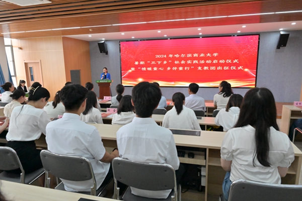 黑龍江經(jīng)濟(jì)網(wǎng)訊(王丹陽(yáng))近日,黑龍江共青團(tuán)“情暖童心·鄉(xiāng)伴童行”暨暑期“三下鄉(xiāng)”社會(huì)實(shí)踐活動(dòng)啟動(dòng)儀式在哈爾濱商業(yè)大學(xué)舉行。哈爾濱商業(yè)大學(xué)黨委副書(shū)記姜國(guó)峰,省希望工程捐助中心主任、省青少年發(fā)展基金會(huì)理事長(zhǎng)杜晶,望奎縣蓮花鎮(zhèn)中心小學(xué)教師楊公立以及校、院兩級(jí)“青馬工程”學(xué)生代表、2023年度暑期“三下鄉(xiāng)”社會(huì)實(shí)踐活動(dòng)優(yōu)秀個(gè)人、團(tuán)隊(duì)代表近200人參加本次活動(dòng)。