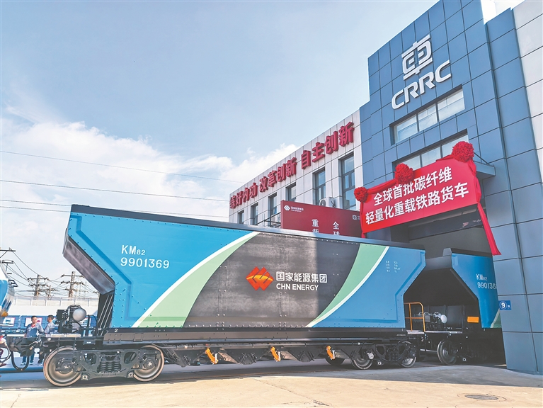 本報訊(劉廷祿 記者 孫昊)10日,在中車齊車集團(tuán)齊車公司,首批6輛身著輕薄碳纖維復(fù)合材料“外衣”的重載鐵路貨車緩緩駛出生產(chǎn)線,向眾人展現(xiàn)它們輕量化智能化的超炫“科技范”,這標(biāo)志著全國首批碳纖維復(fù)合材料輕量化重載鐵路貨車正式發(fā)布。