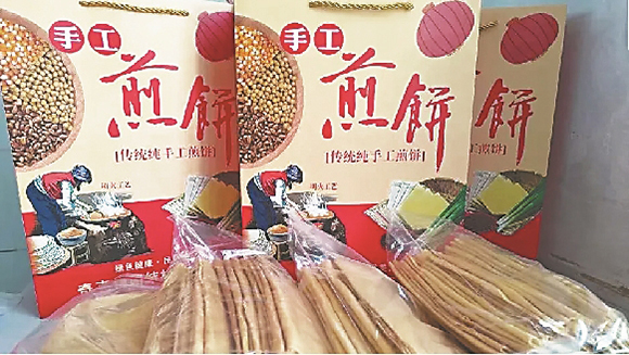 村民高桂梅的攤煎餅手藝在十里八村小有名氣。走進(jìn)高桂梅家,一陣陣煎餅香味撲面而來,七八位婦女忙碌著,研磨、打糊、擠糊,攤餅、烘焙、成型,不到一分鐘,一張薄如蟬翼的煎餅就攤好了,翻動(dòng)間,香噴噴的氣息就飄滿整個(gè)院子,隨著工人們將這些煎餅放入包裝袋,它們即將走向萬千老百姓的餐桌。