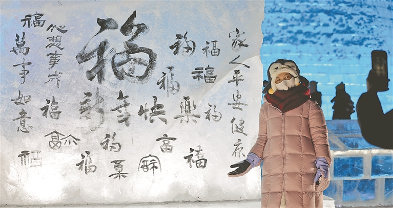1月16日,為喜迎乙巳蛇年的到來(lái),哈爾濱冰雪大世界在園區(qū)打造一座許愿冰墻,上面寫(xiě)滿(mǎn)各種祝福,為新年增添喜氣。本報(bào)記者 張澍攝