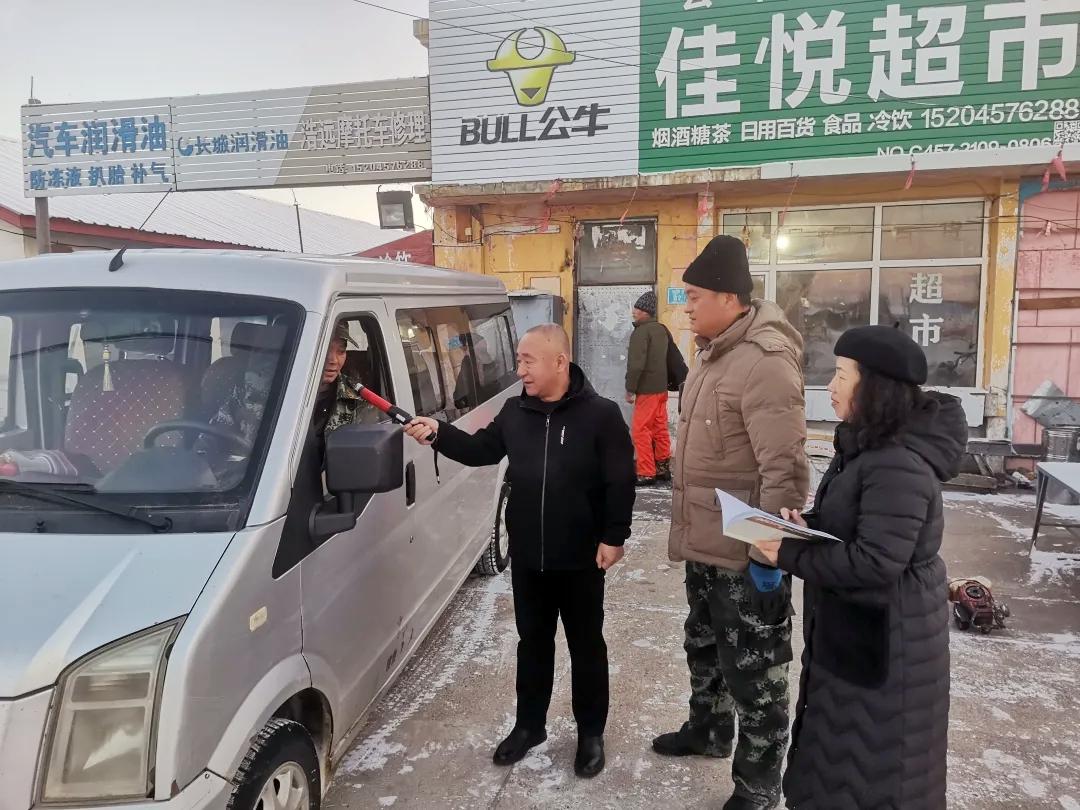林場宣傳員為車輛駕駛員發(fā)放安全宣傳材料(趙可心 攝)