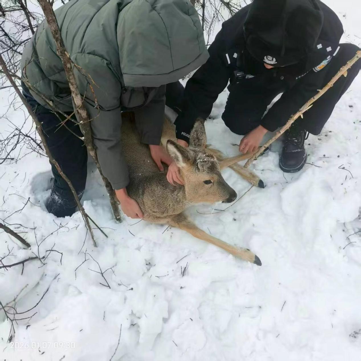 聯(lián)合巡護(hù)小組深入縣域重點(diǎn)野外區(qū)域,對野生動(dòng)物頻繁活動(dòng)的林區(qū)及重點(diǎn)生態(tài)功能區(qū)進(jìn)行排查。其間,小組發(fā)現(xiàn)一只疑似受傷的狍子,經(jīng)檢查確認(rèn)其體表無明顯外傷、精神狀態(tài)良好。工作人員對其進(jìn)行短暫觀察后撤離,讓狍子重返野外棲息地。