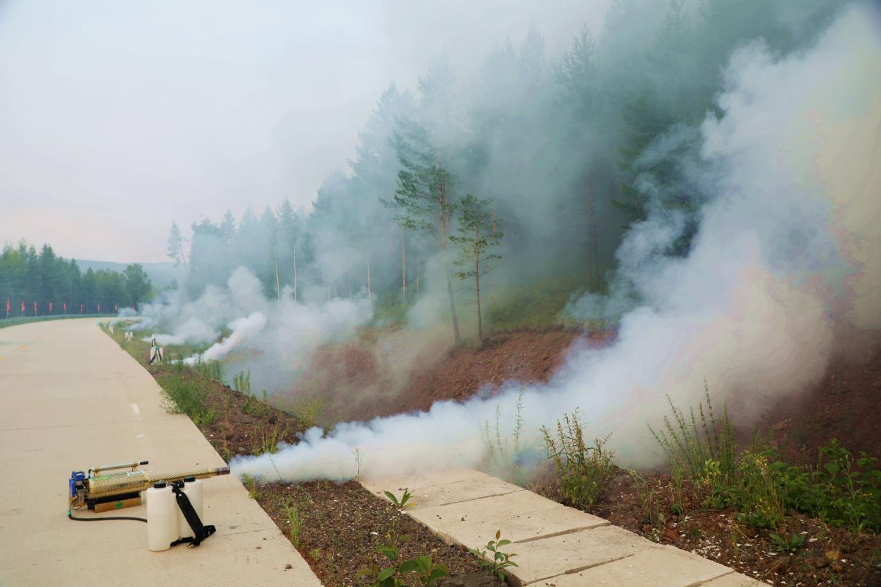 阿木爾林業(yè)局林防站聯(lián)合相關林場,點燃“百菌清”煙劑,防治“早落病”效果(王力 攝)
