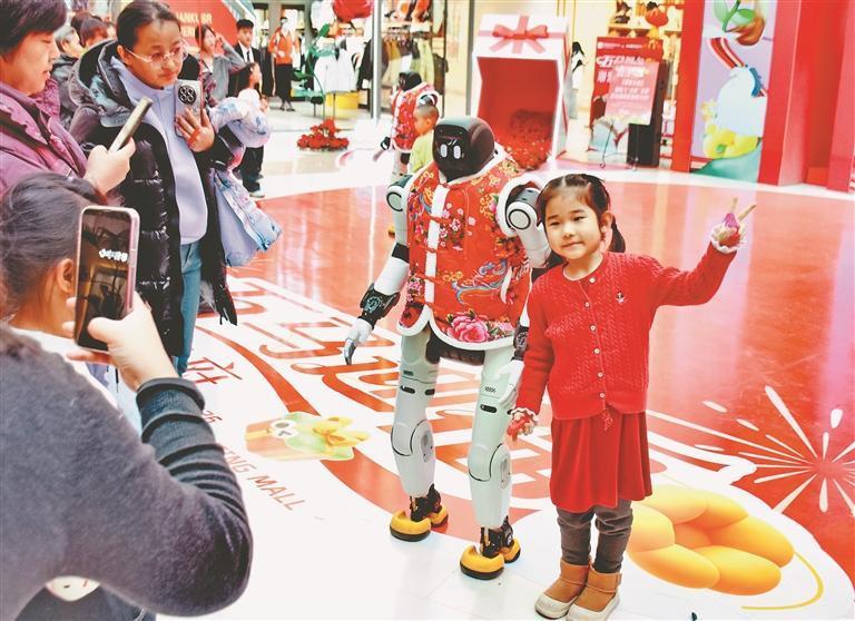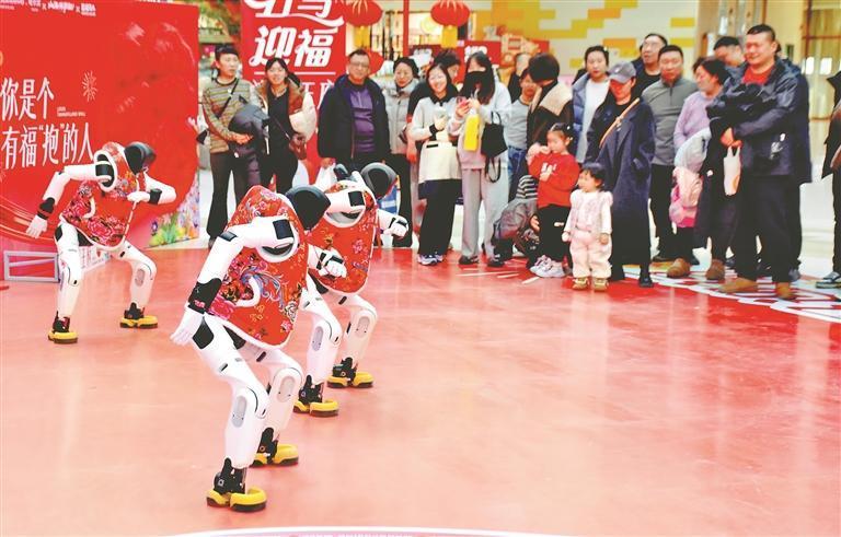 19日,正月初三。哈爾濱市道里區(qū)一家大型商場舉行了機器人舞蹈表演,吸引許多市民游客駐足觀看。走進(jìn)場地的三個機器人身高1.5米左右,穿著紅色棉坎肩,十分喜慶。在音樂伴奏下,它們翩翩起舞,動作整齊劃一。表演結(jié)束后,機器人走進(jìn)人群,與大家握手、合影、互動。春節(jié)假期,哈爾濱市多家商場都推出了機器人表演,讓市民游客與最新科技來個親密接觸。