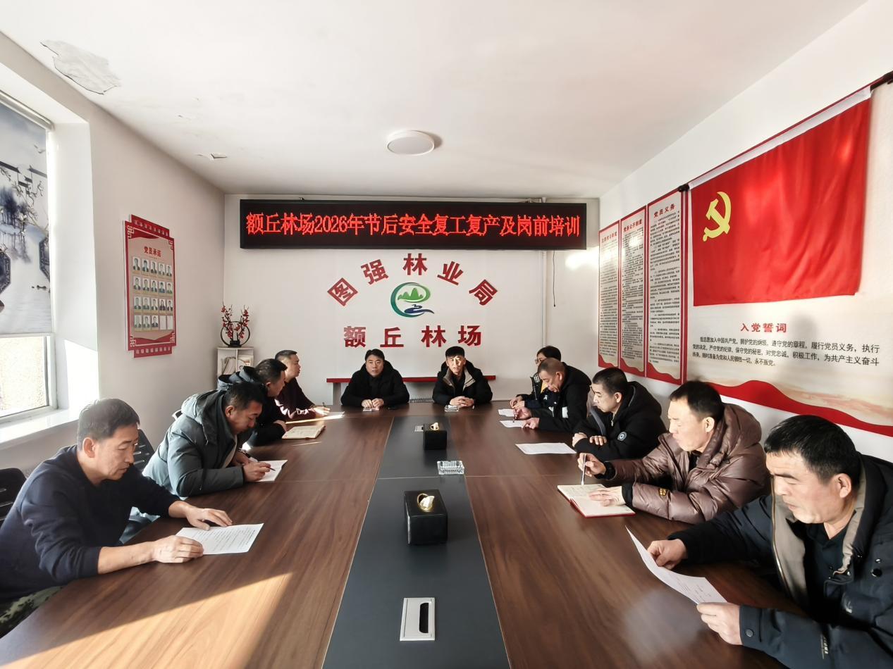 黑龍江經(jīng)濟(jì)網(wǎng)訊(劉鑫)新年春作首,萬(wàn)事行為先。春節(jié)假期過后,圖強(qiáng)林業(yè)局額丘林場(chǎng)迅速組織全體干部職工收心歸位、調(diào)整狀態(tài),全面從節(jié)日氛圍轉(zhuǎn)入工作常態(tài),把思想和精力集中到林場(chǎng)各項(xiàng)重點(diǎn)工作上來,以昂揚(yáng)姿態(tài)、務(wù)實(shí)作風(fēng)開啟新一年林場(chǎng)事業(yè)高質(zhì)量發(fā)展新征程。